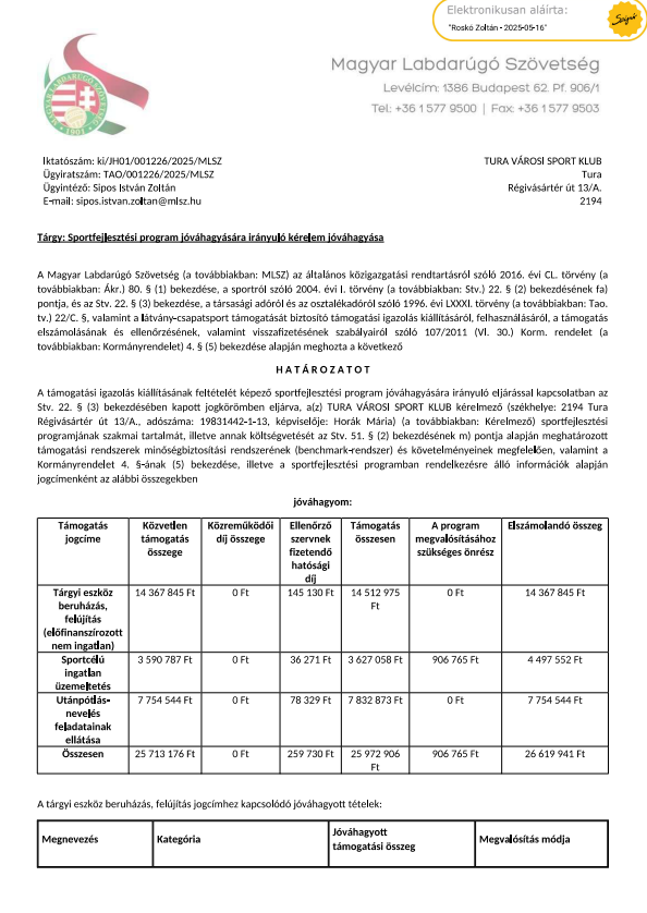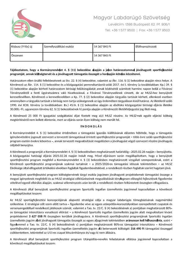 SFP-001226/2025/MLSZ Jvhagy hatrozat s SFP