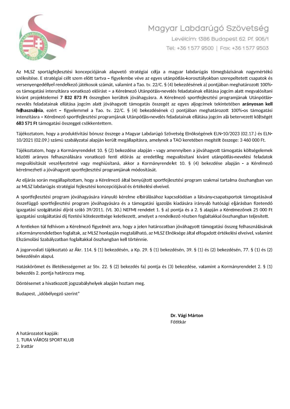 SFP-63543/2023MLSZ hosszabbtst jvhagy hatrozat